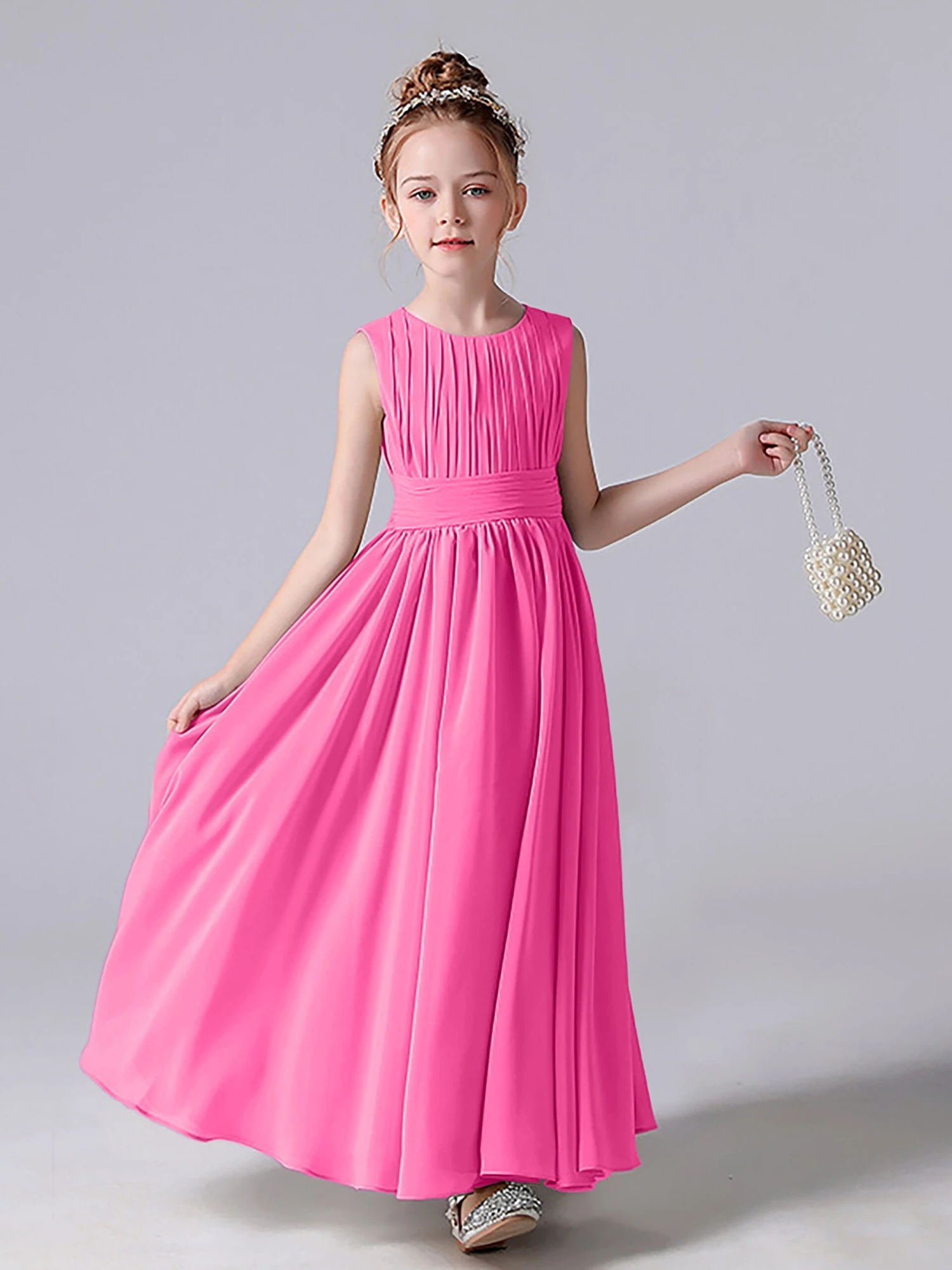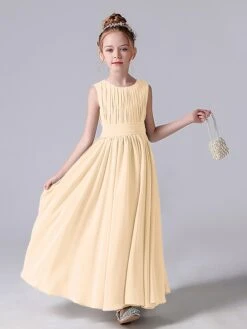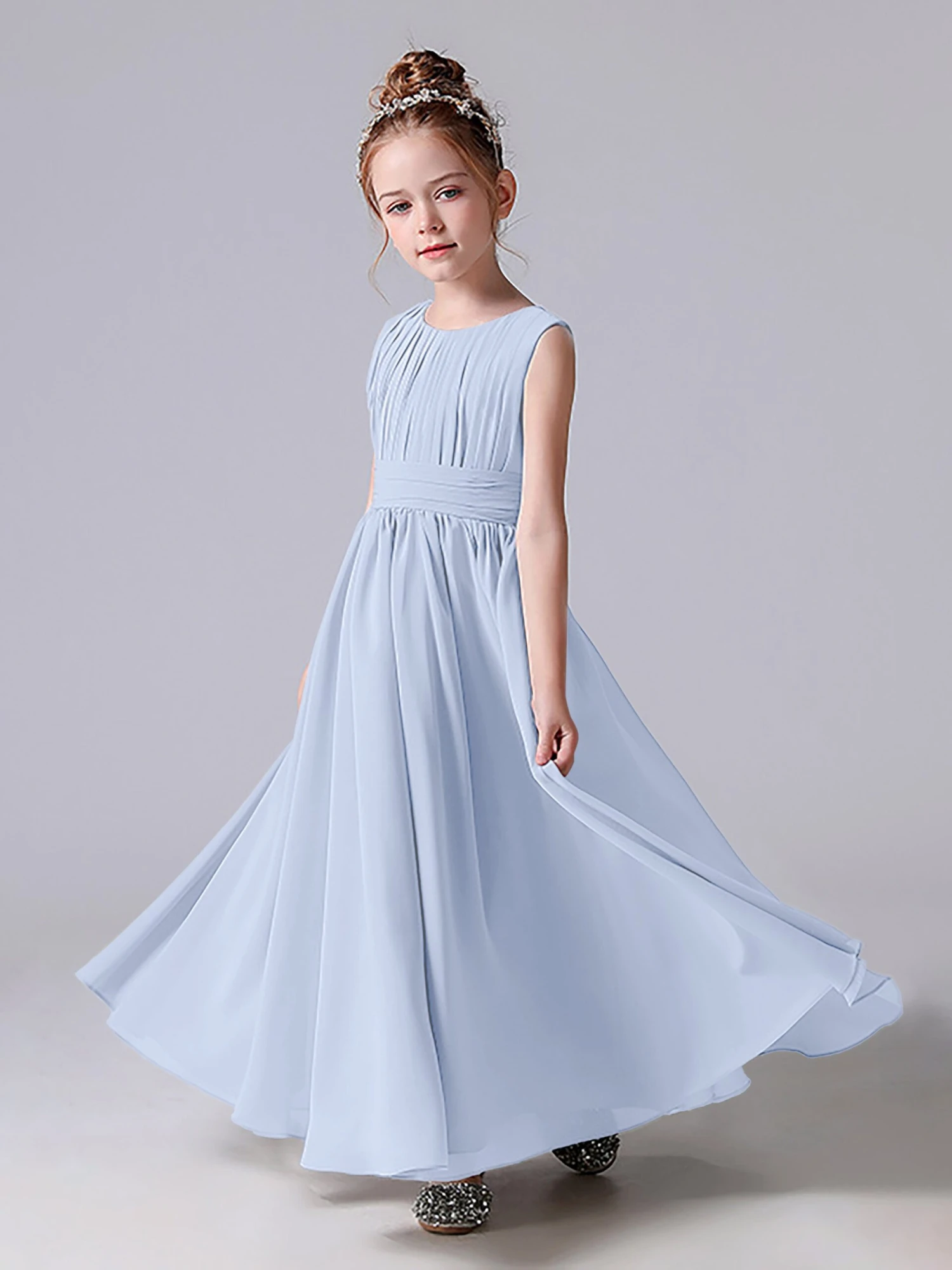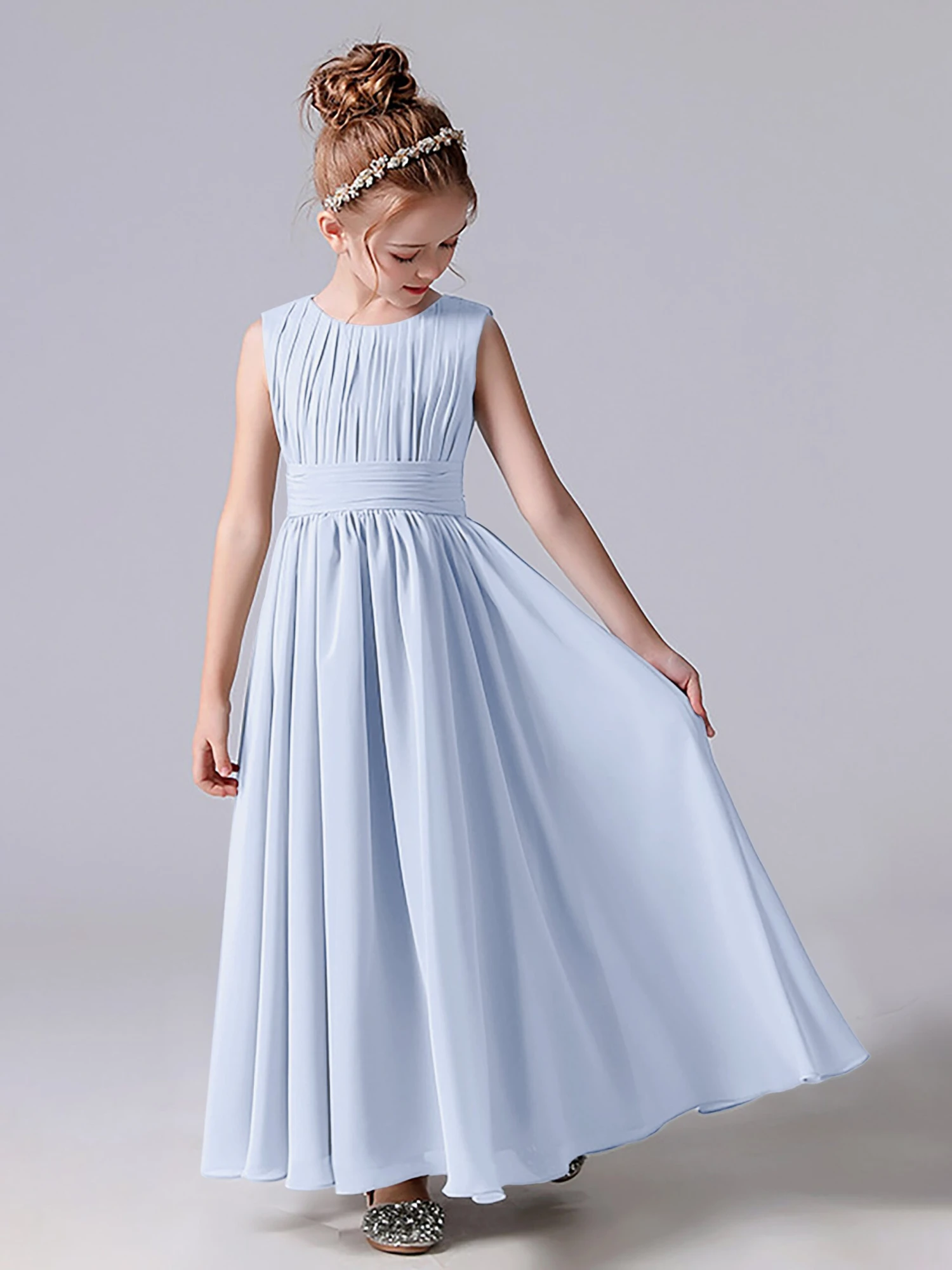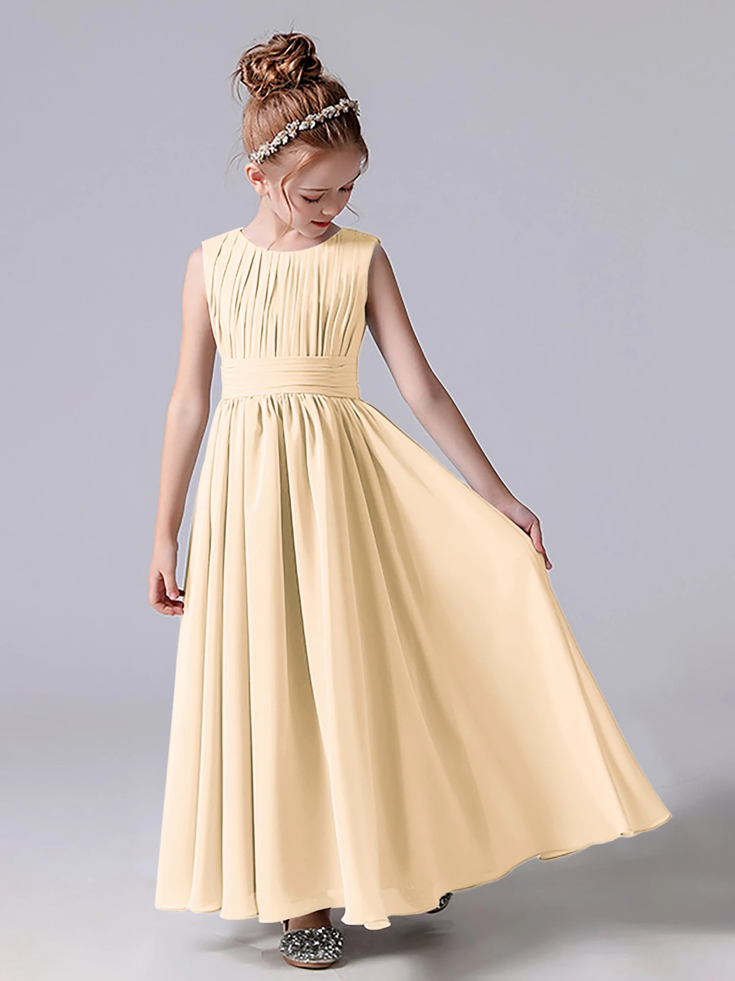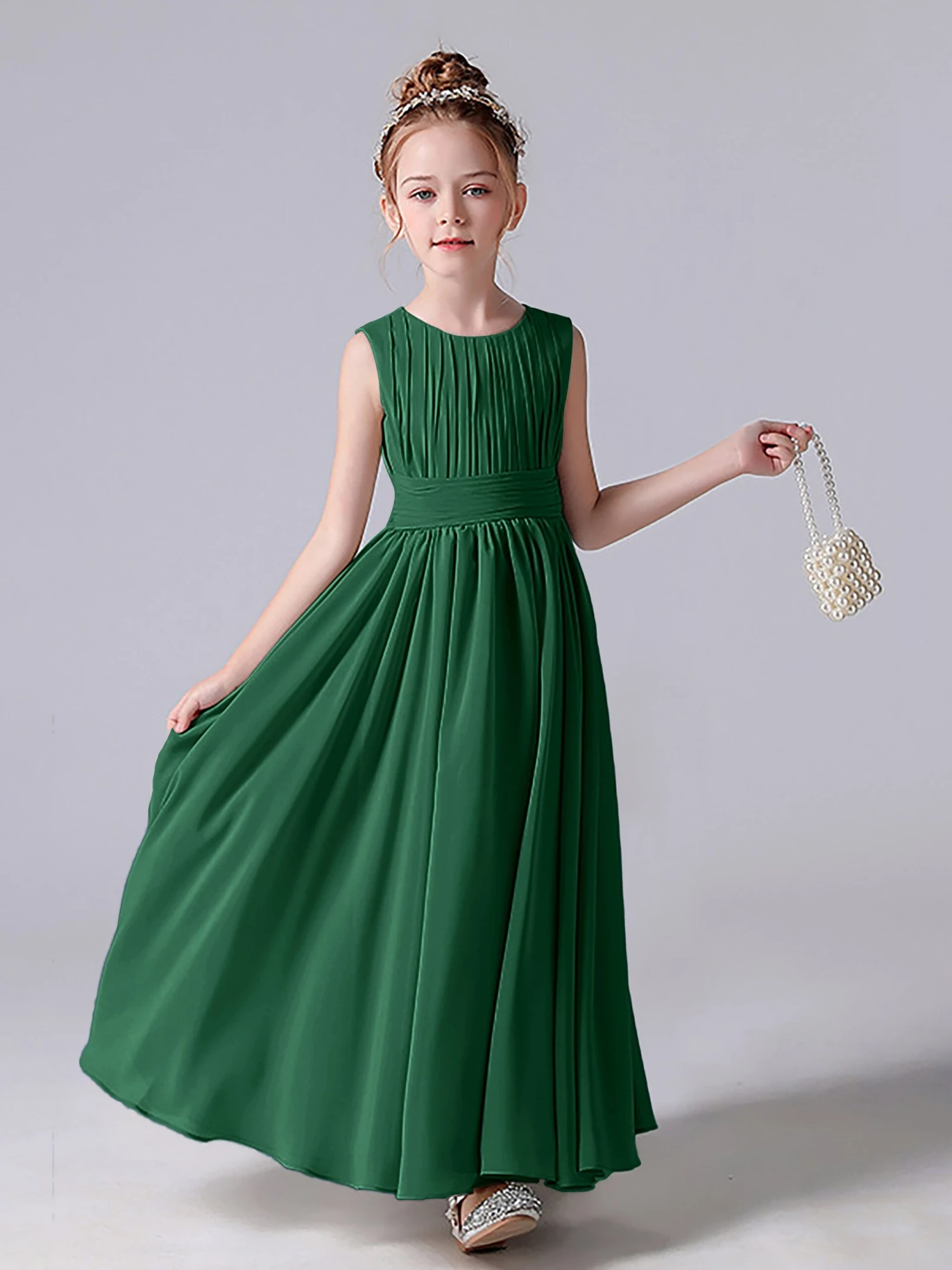 Pleats Scoop Sleeveless Junior Bridesmaid Dress