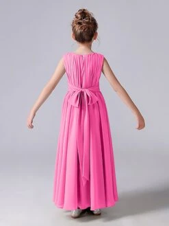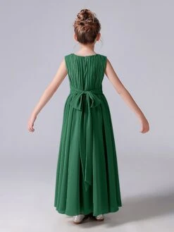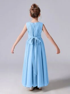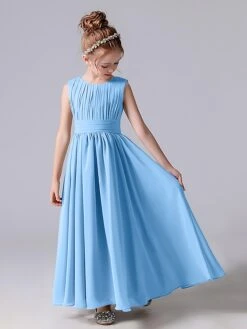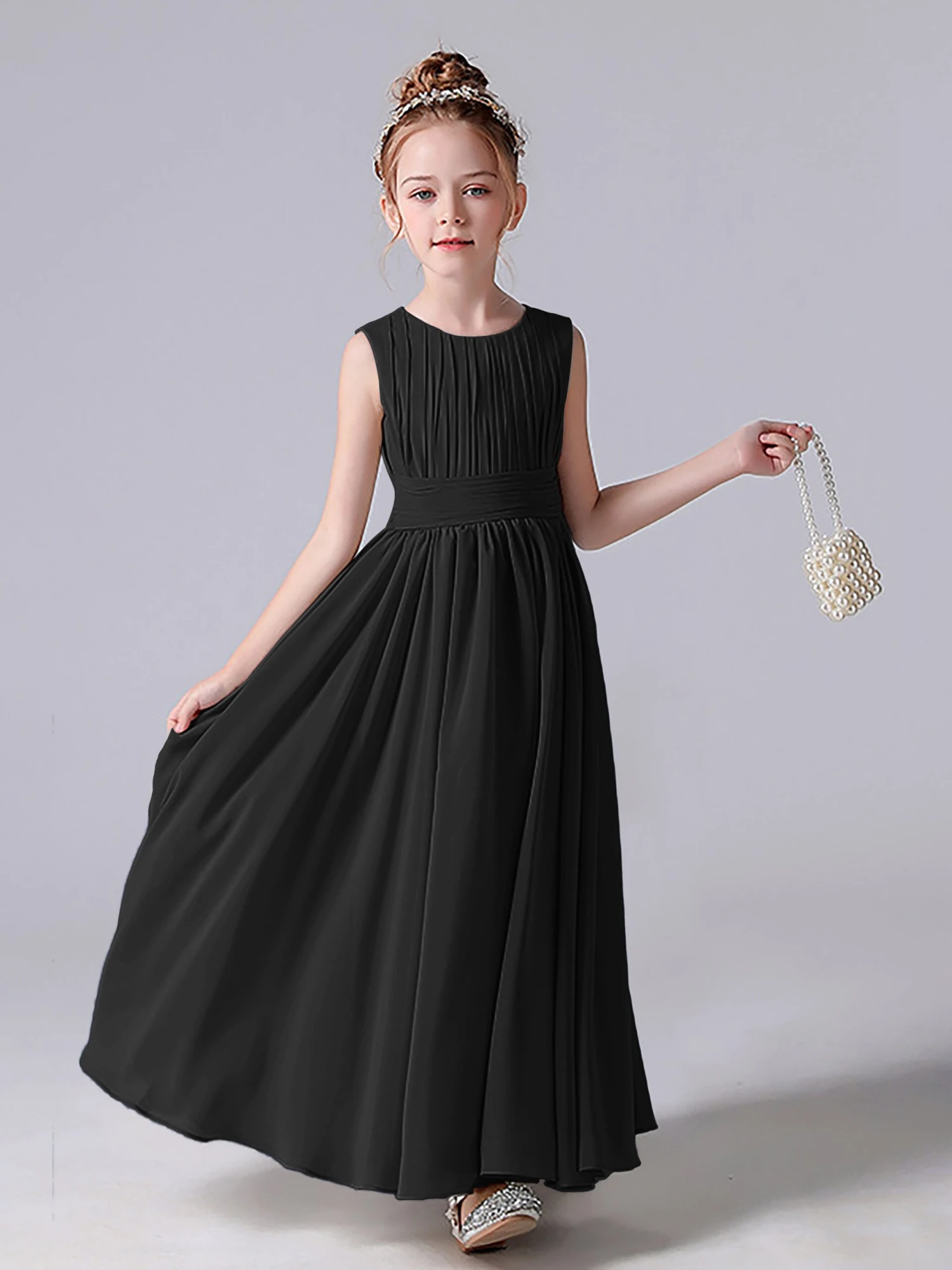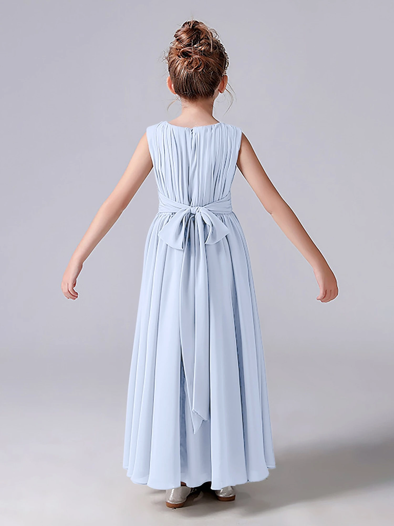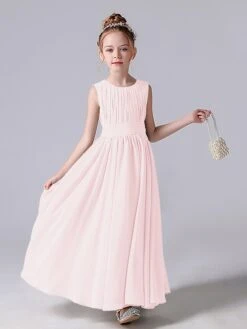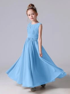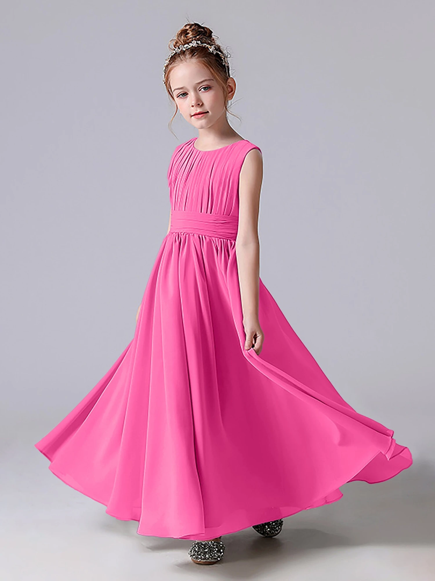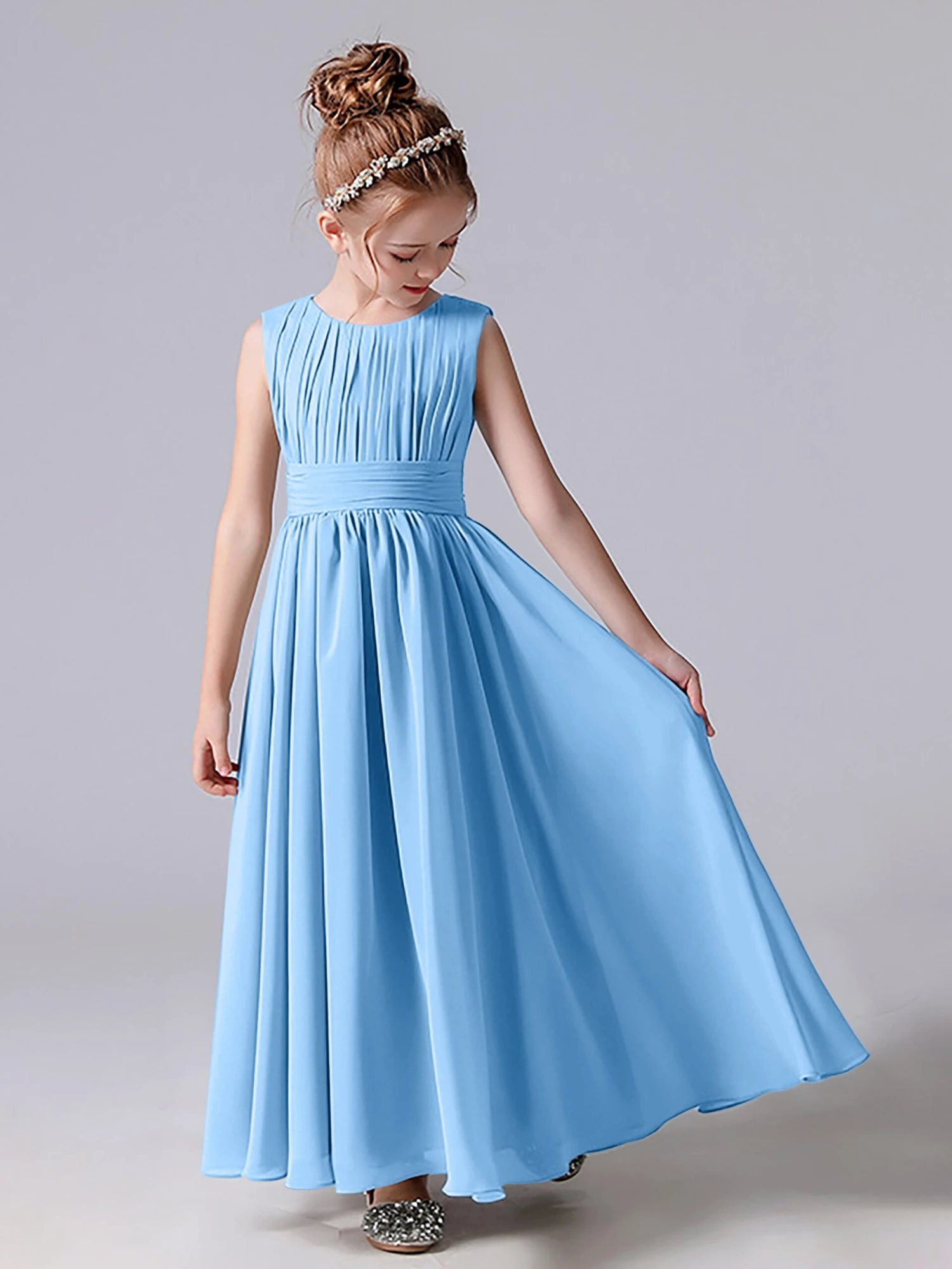 Pleats Scoop Sleeveless Junior Bridesmaid Dress