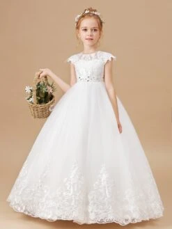Pretty Cap Sleeves Tulle Flower Girl Dress