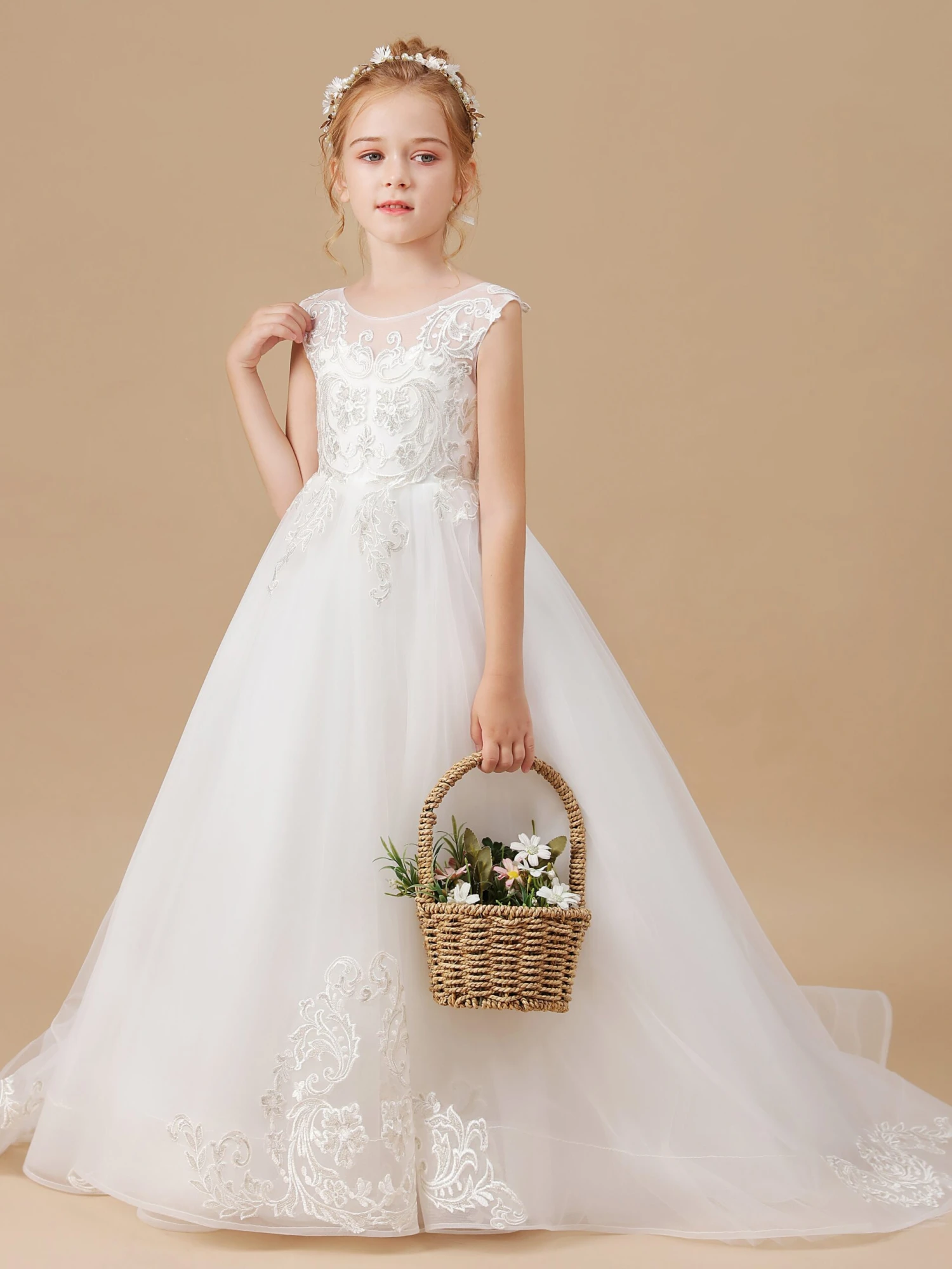 Princess Flower Girl Dress With Training