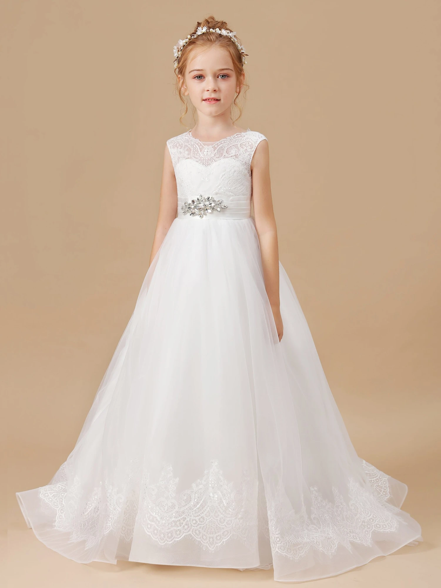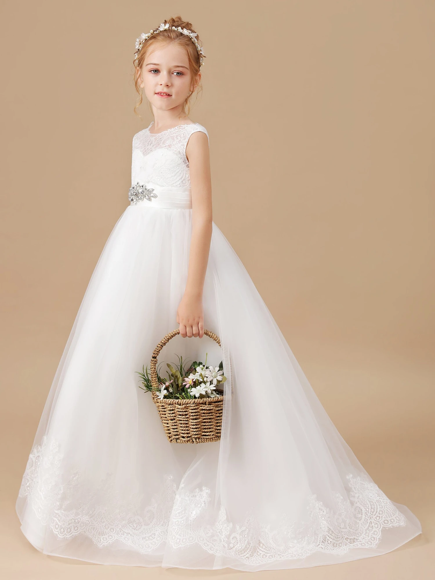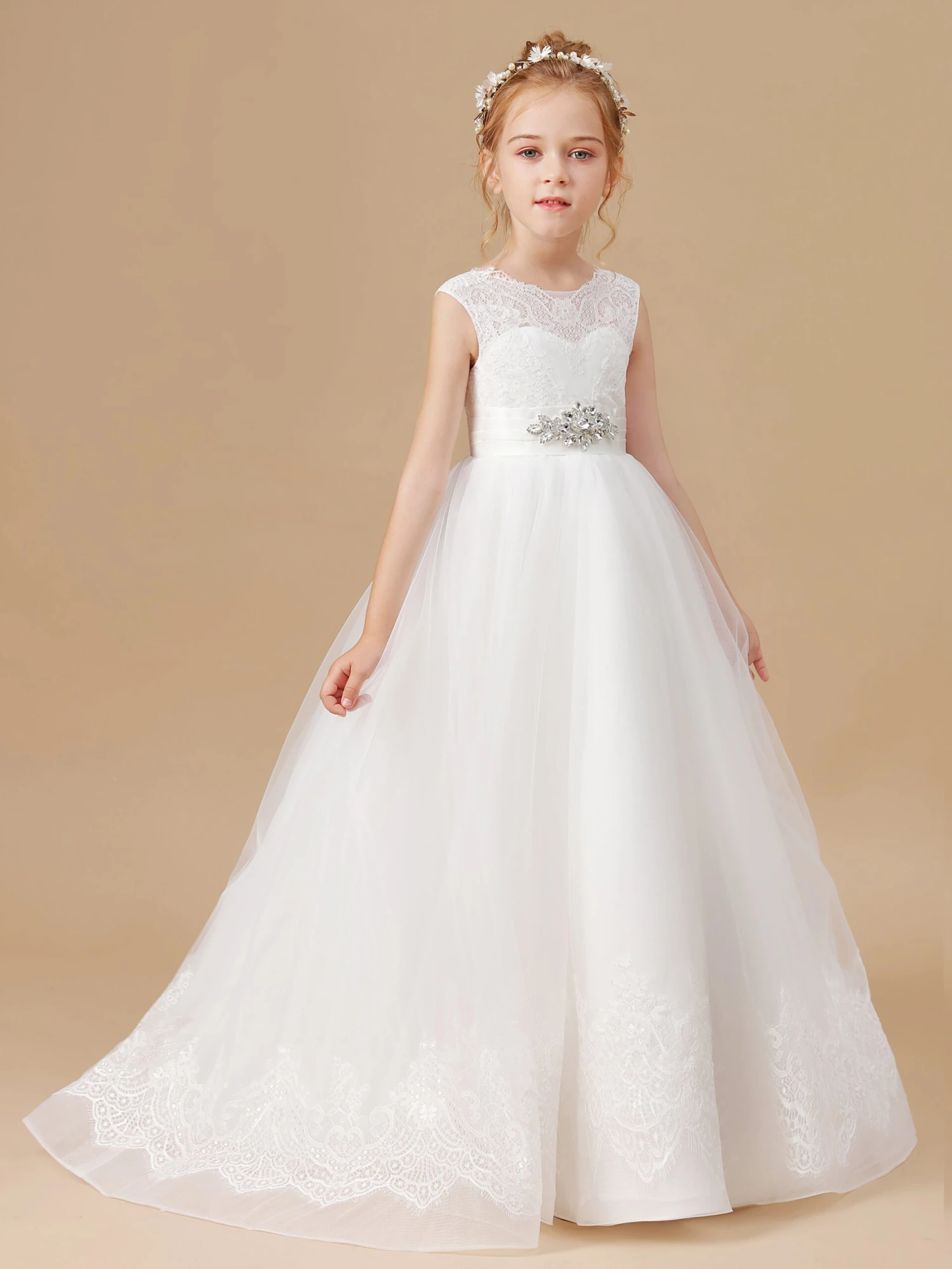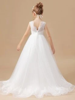 Princess Lace Flower Girl Dress With Training