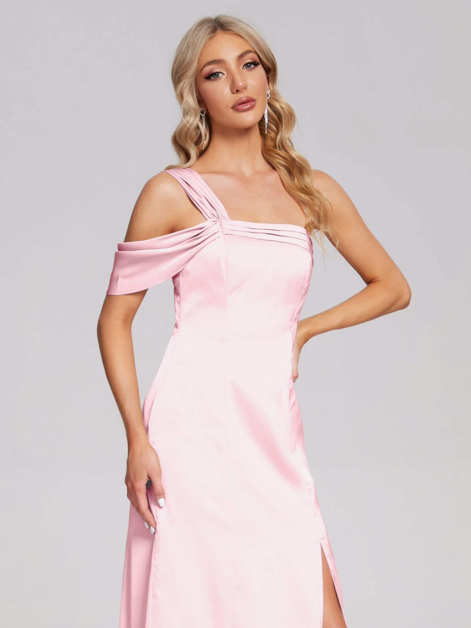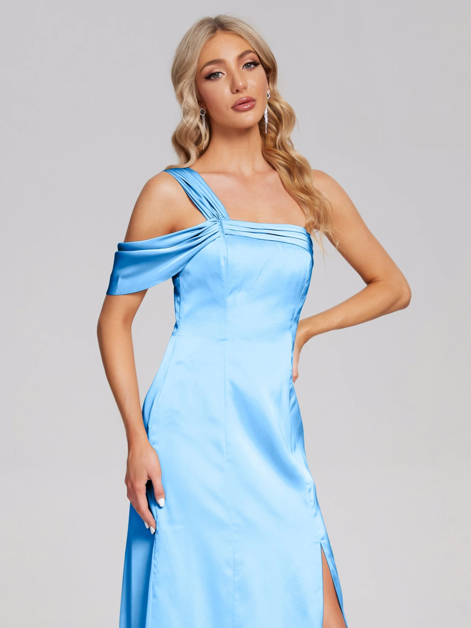 Raelyn Asymmetrical Pleats Soft Satin Dresses
