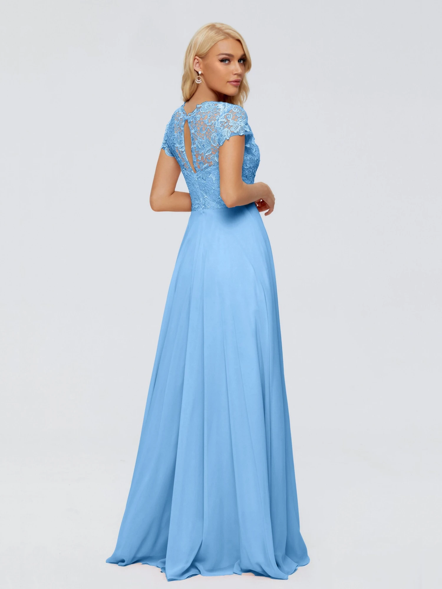- Newly designed pockets on both sides for carrying important items with you when attending the occasion. The cap sleeves are friendly to everyone and the lace adds even more elegance to the dress.