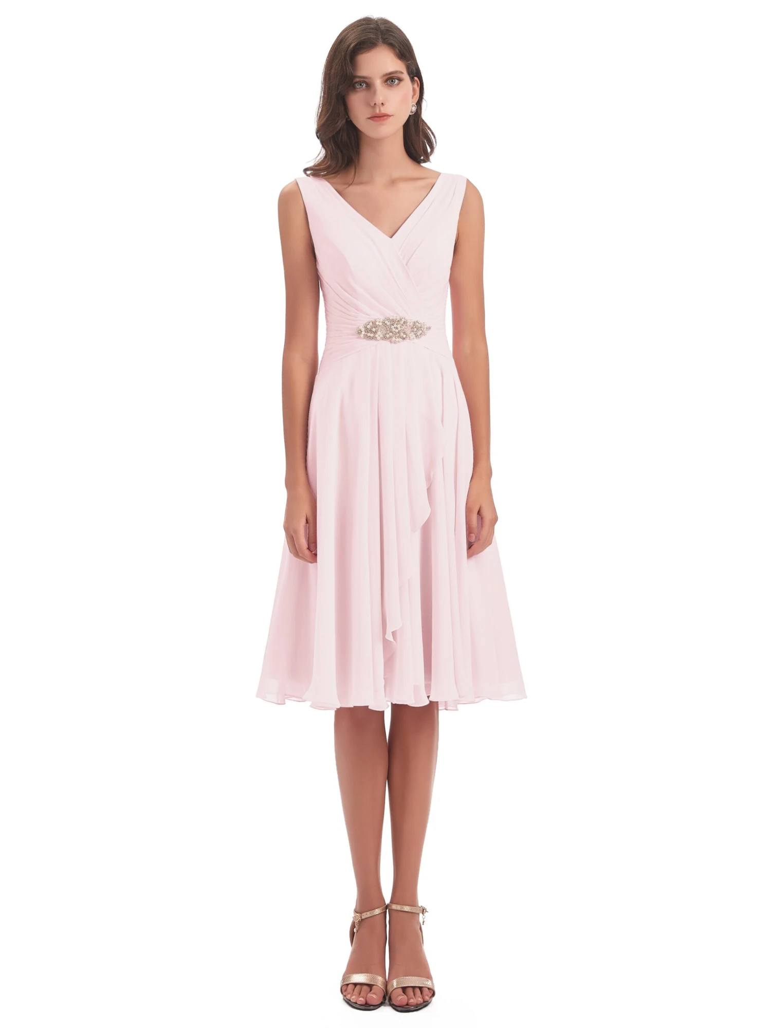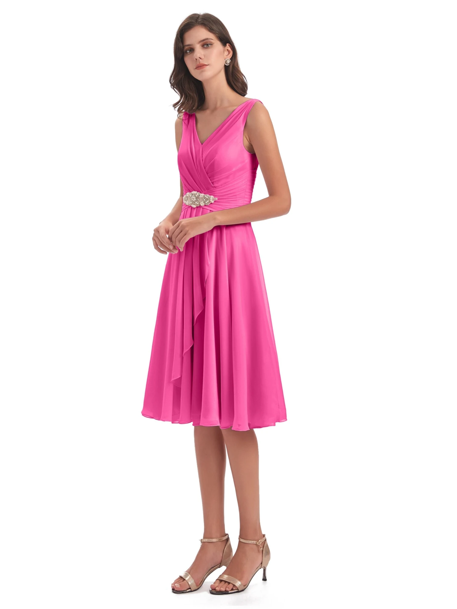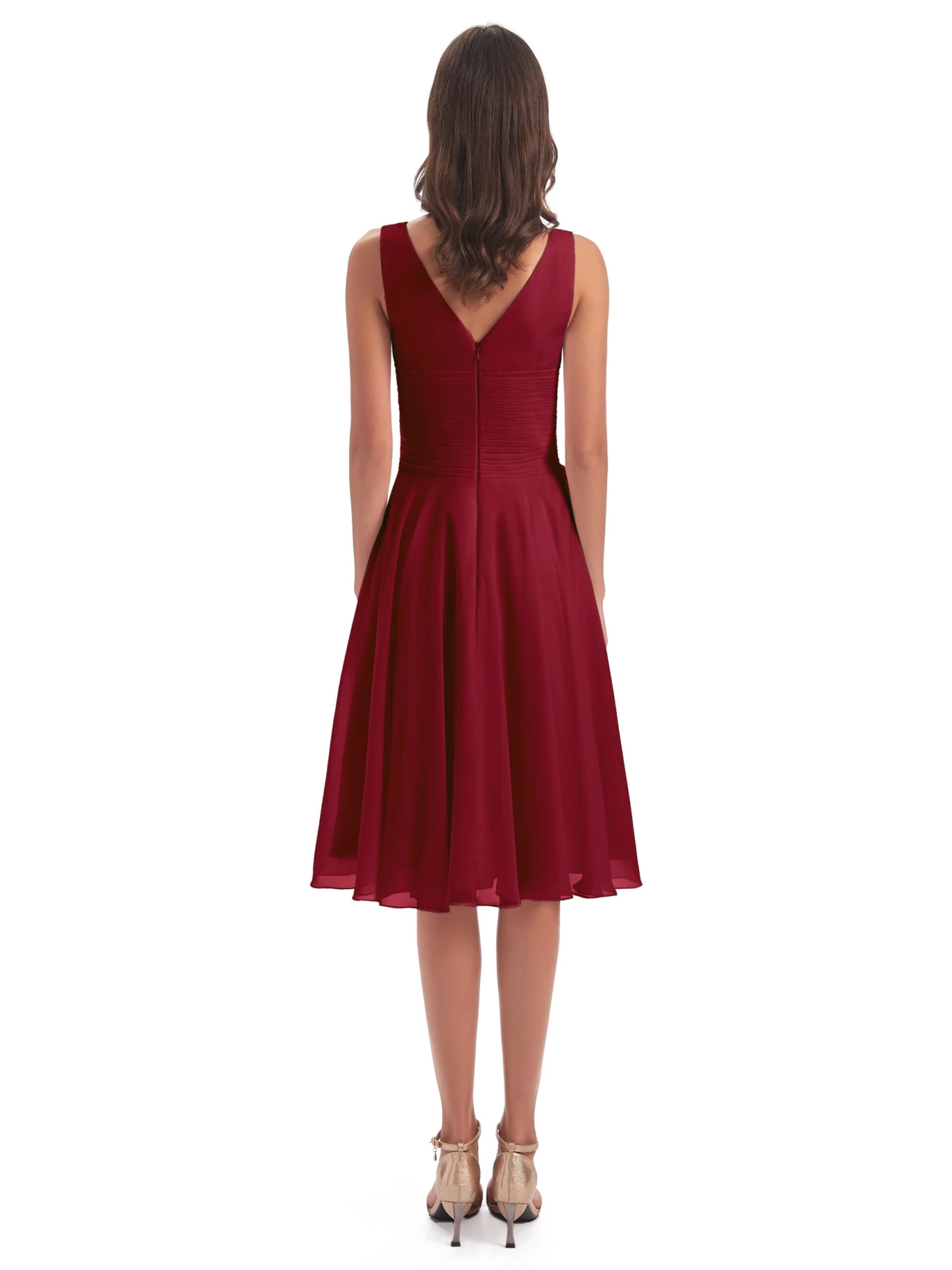 Sophie Affordable Chiffon V-neck Knee-Length Bridesmaid Dresses