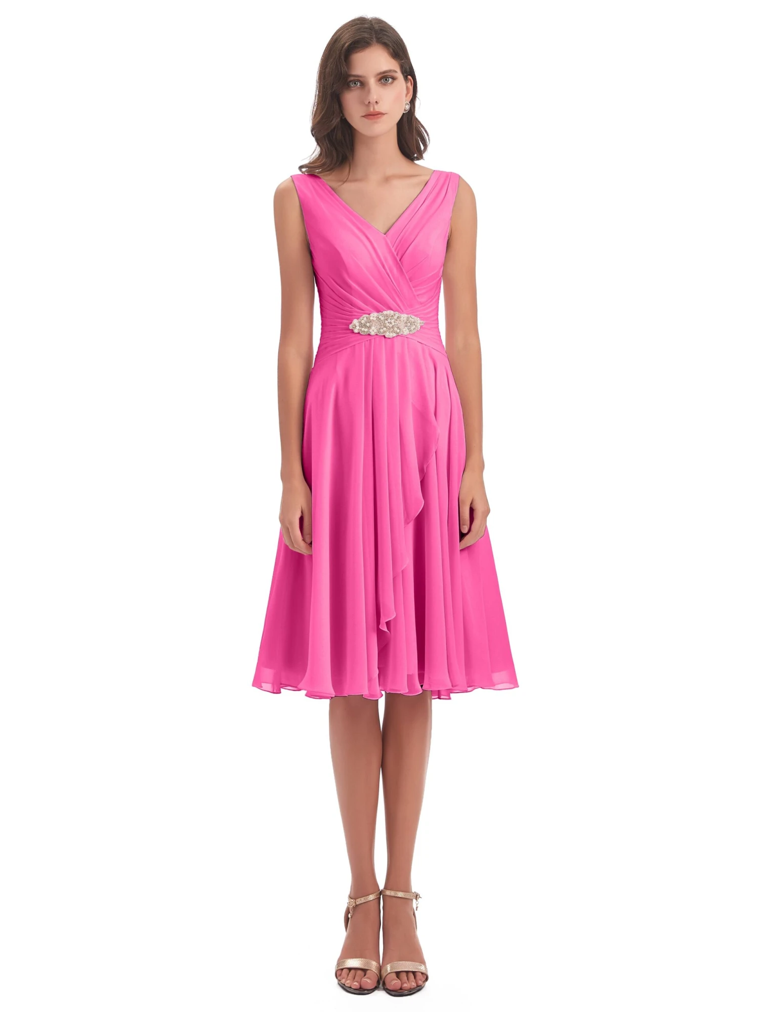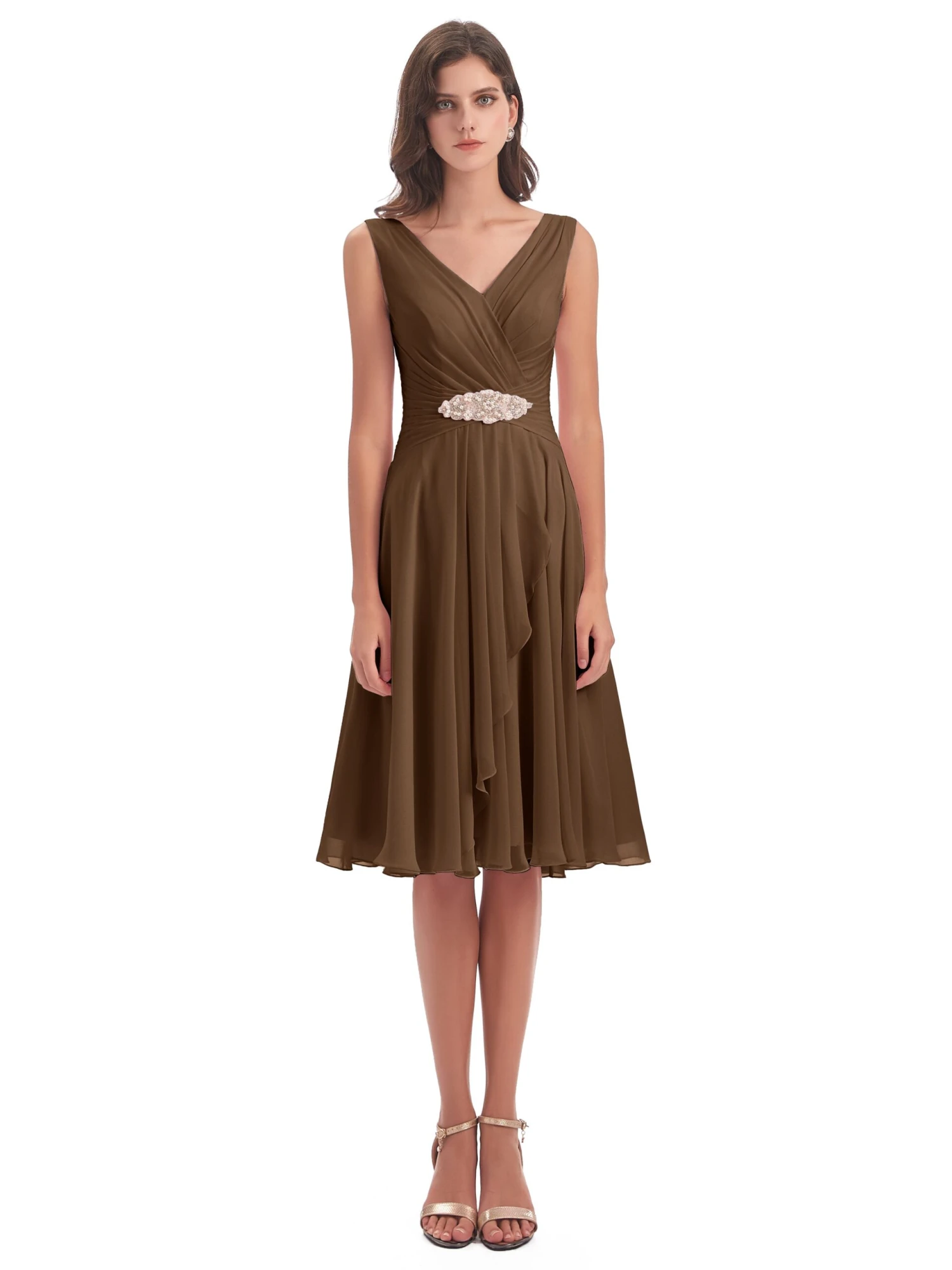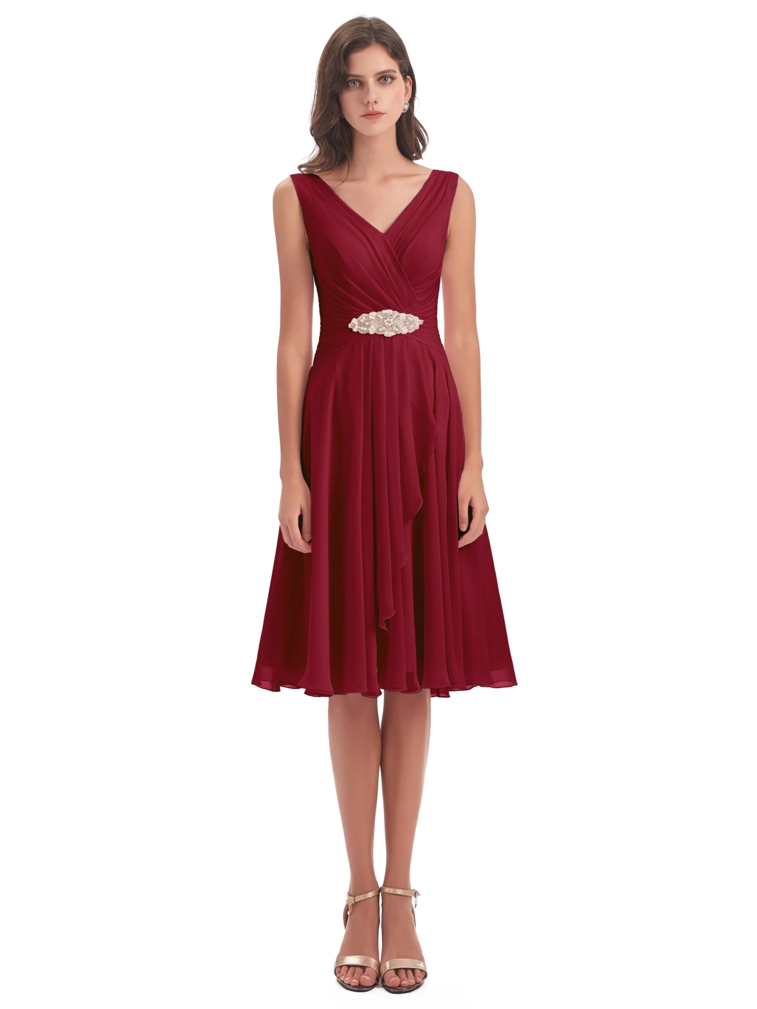 Sophie Affordable Chiffon V-neck Knee-Length Bridesmaid Dresses
