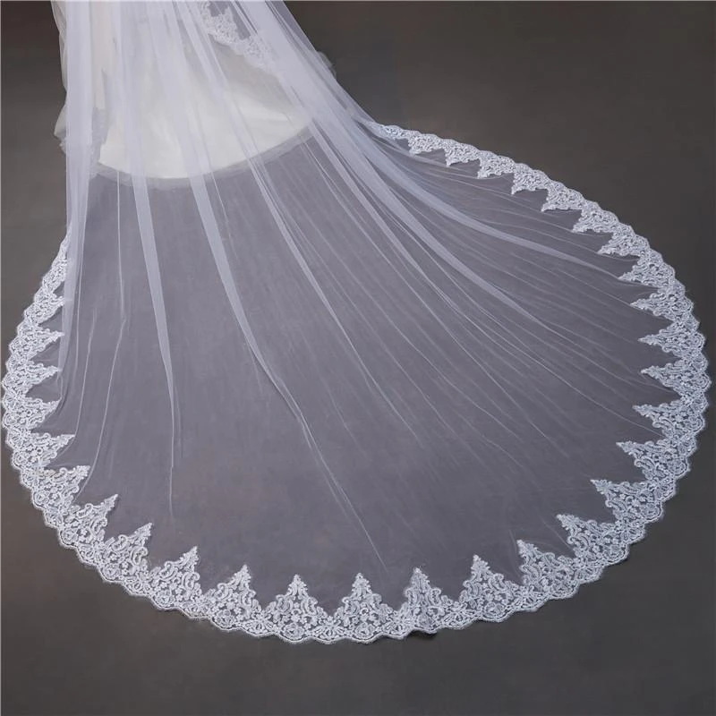 Two-Tier Wedding Veil UK Tulle Lace Edge Cathedral Veils Appliques TS91013