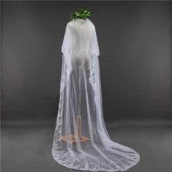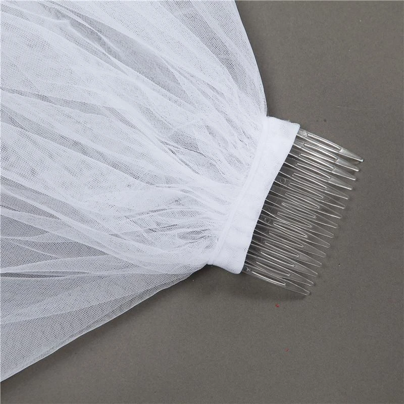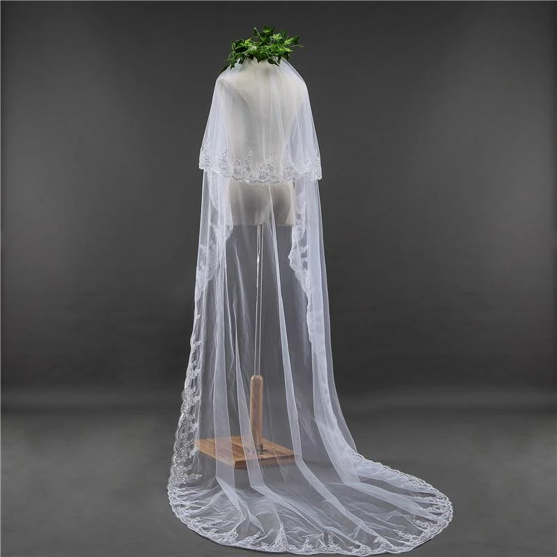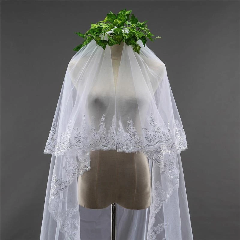 Two-Tier Wedding Veil UK Tulle Lace Edge Chapel Veils Appliques TS91001