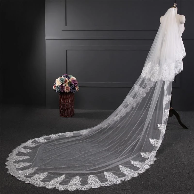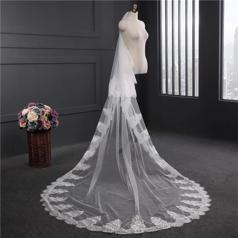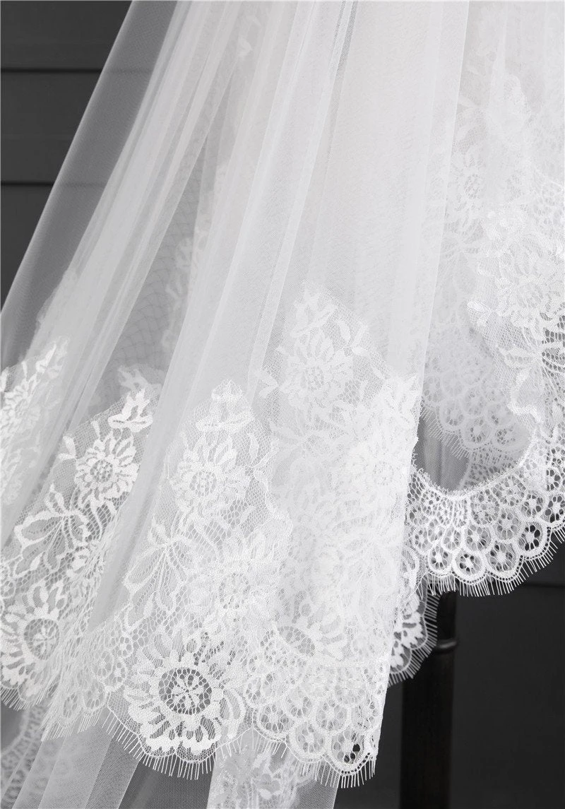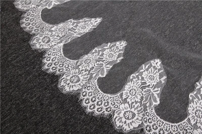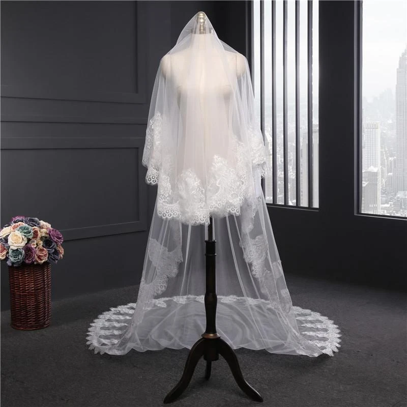 Two-Tier Wedding Veil UK Tulle Lace Edge Chapel Veils Appliques TS91024