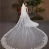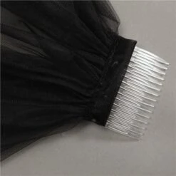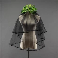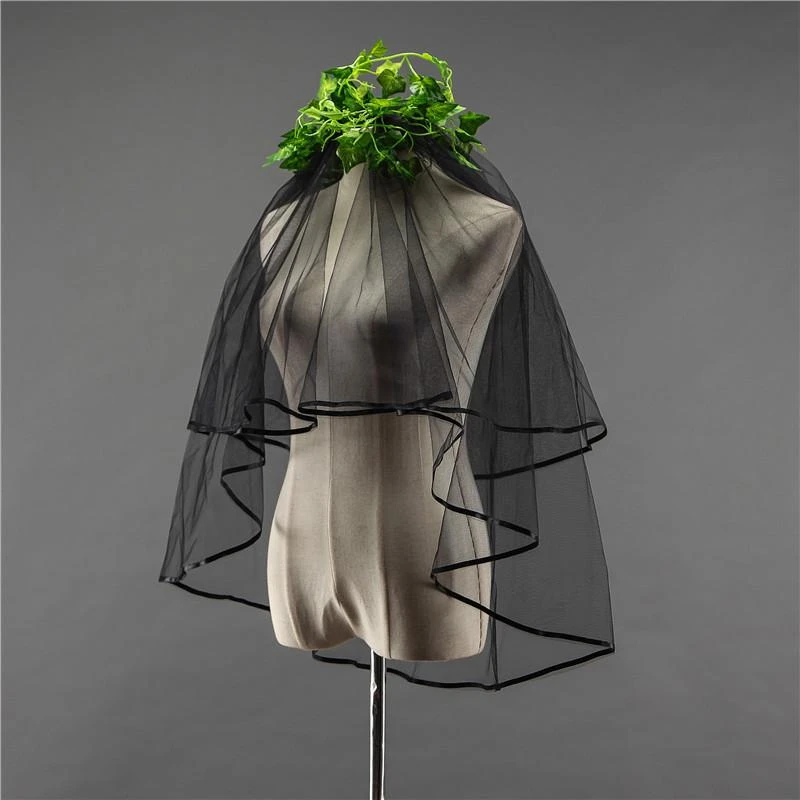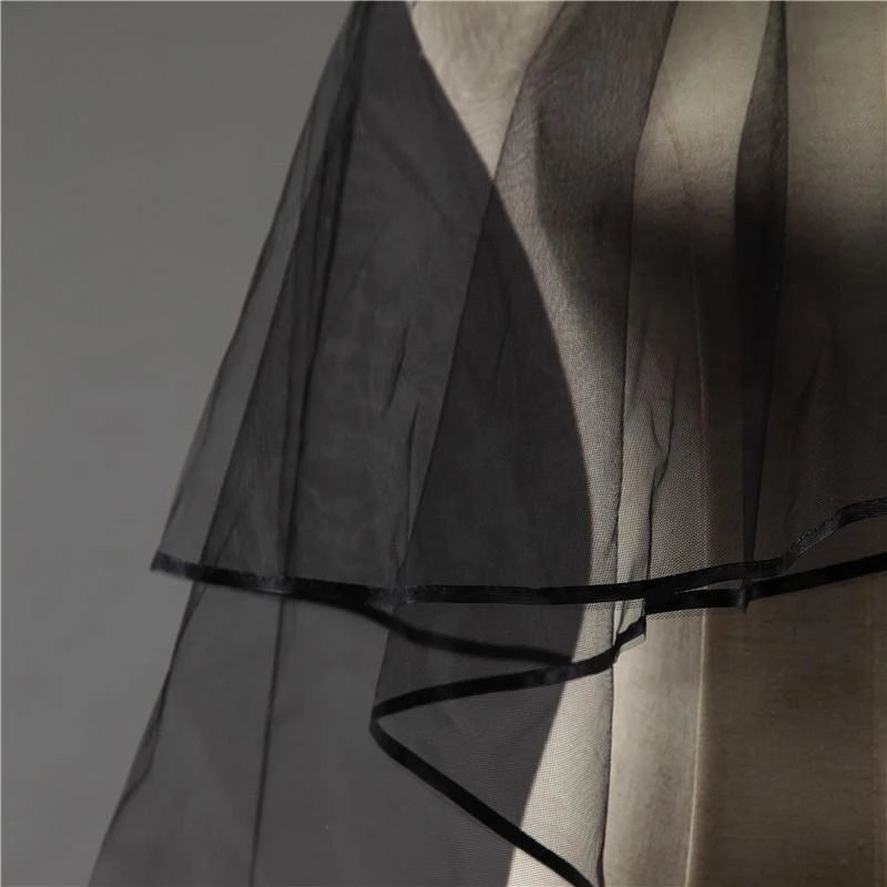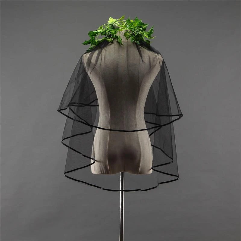 Two-Tier Wedding Veil UK Tulle Ribbon Edge Black Elbow Bridal Veils TS91044
