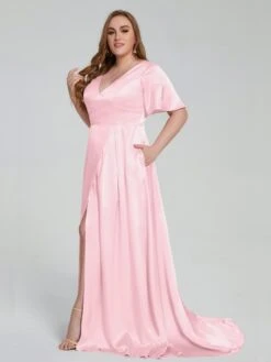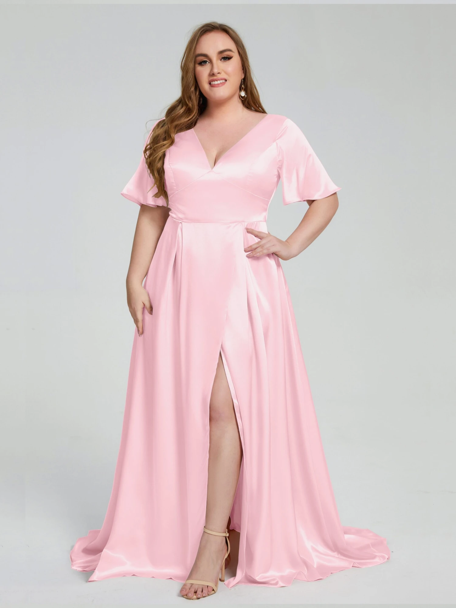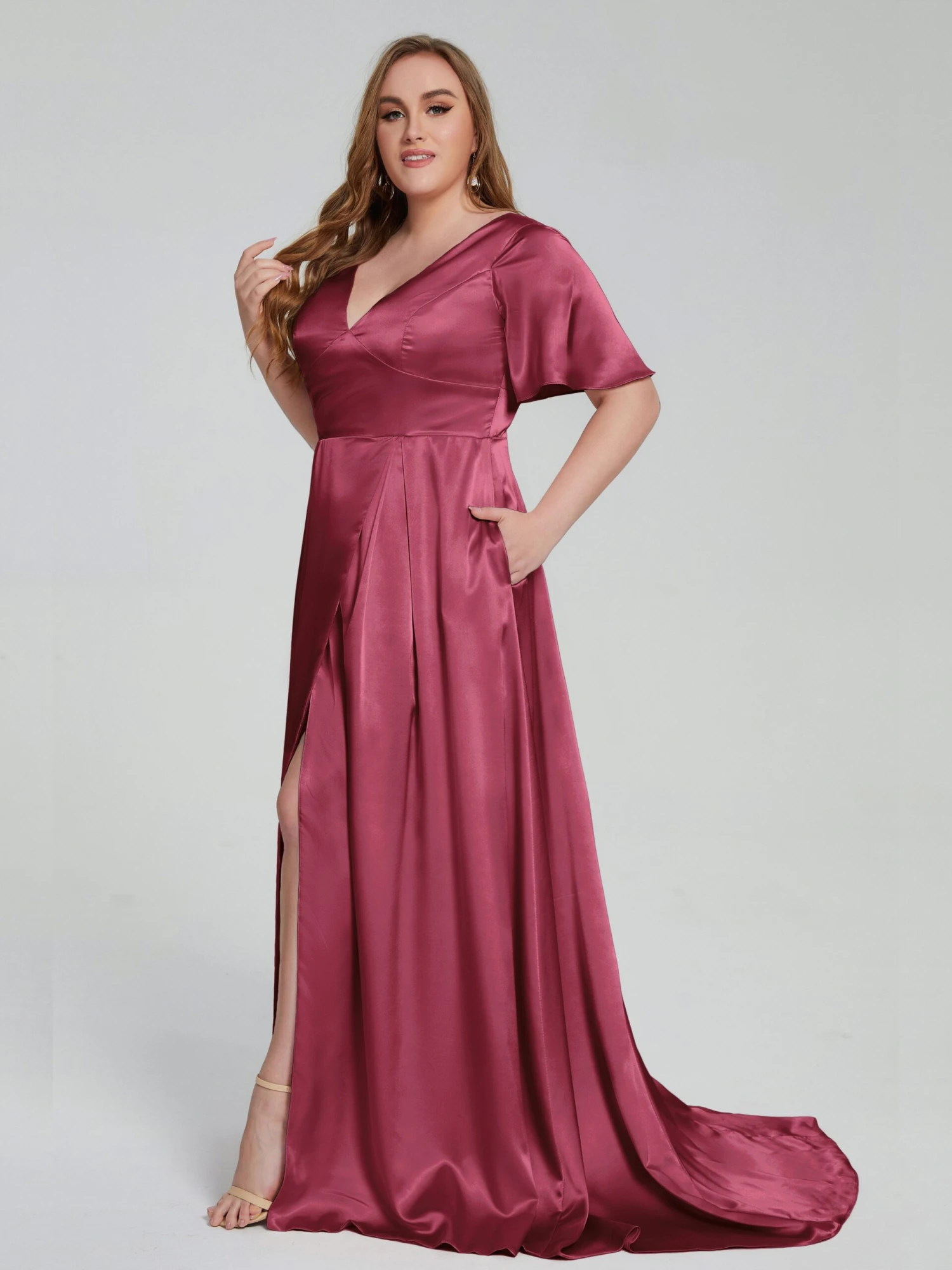 Vanessa Modest Short Sleeves Plus Size Bridesmaid Dresses With Pockets