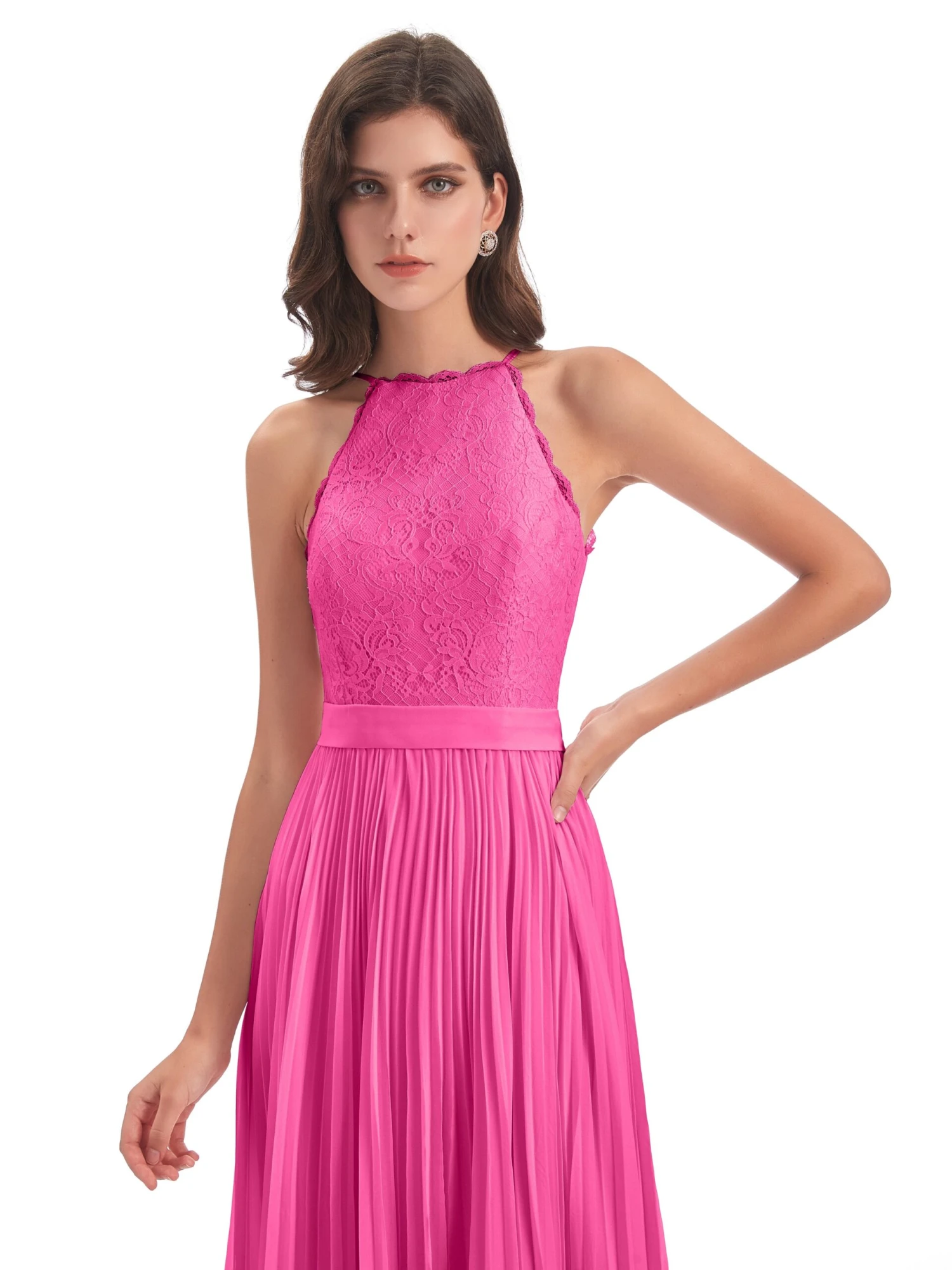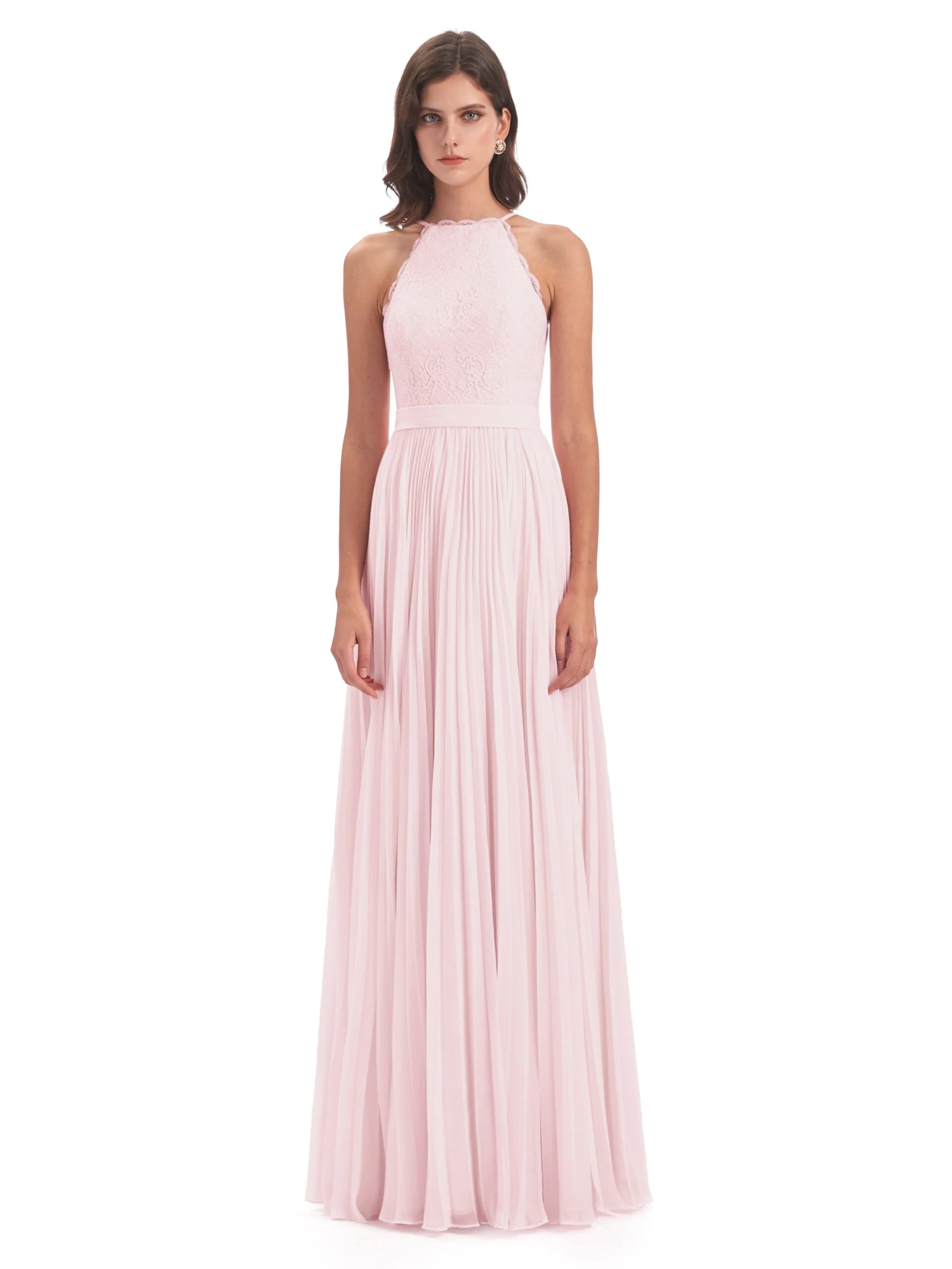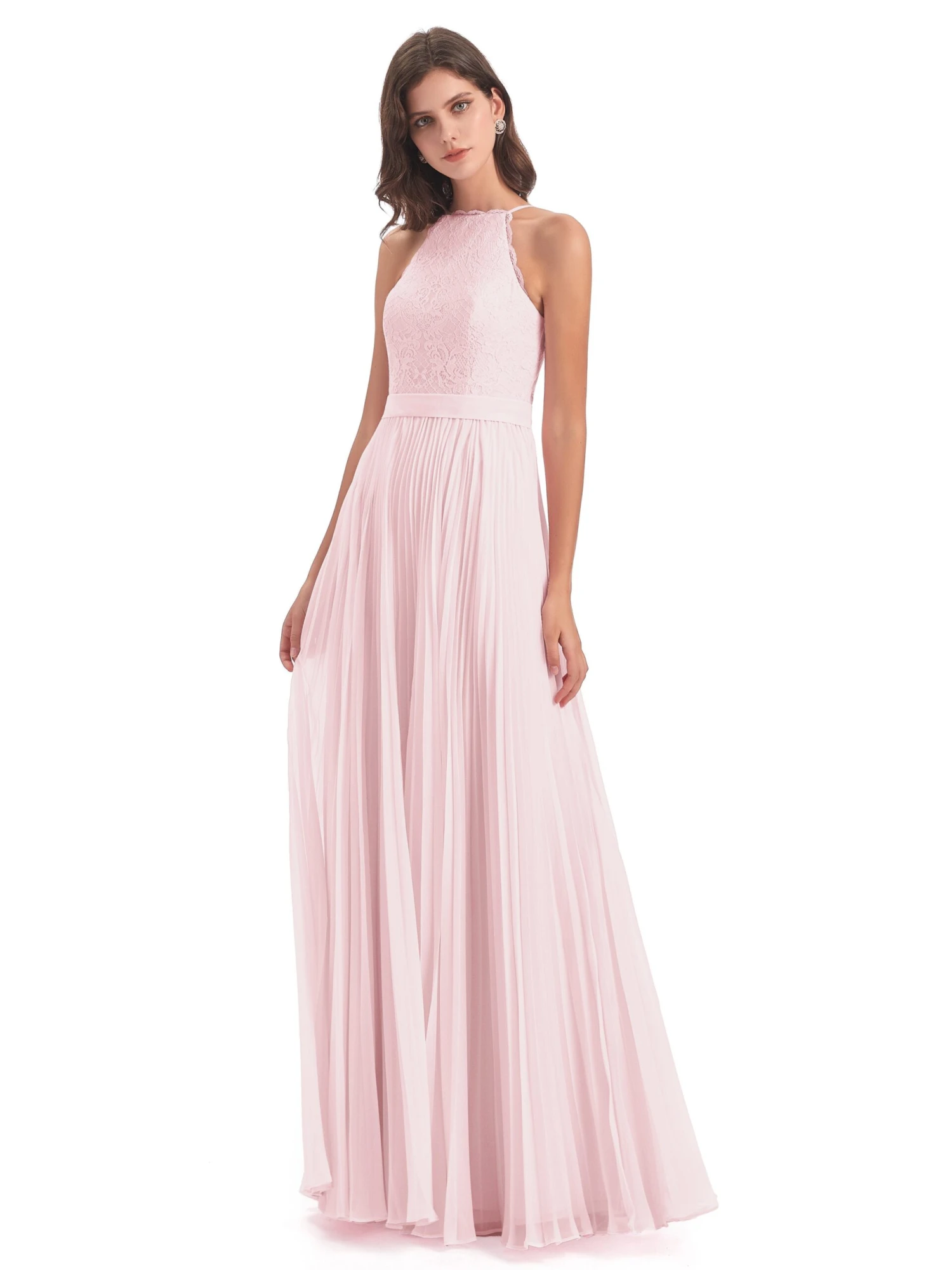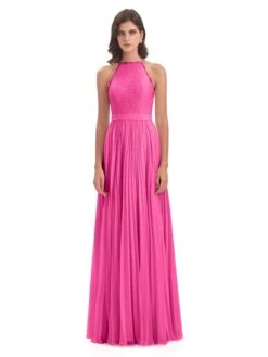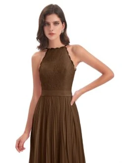 Zoe Awesome Lace Halter Floor-Length Bridesmaid Dresses